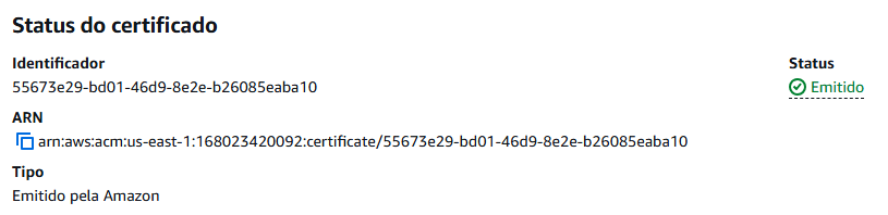 Choose DNS validation, create the CNAME records in Route 53 when prompted, and wait until the certificate status changes to Issued.
