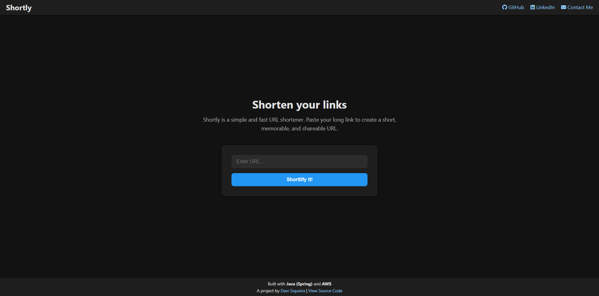 The backend was built using Spring Boot. Its core functionality is to take a long URL and generate a short code, mapping it back to the long URL. To add another feature, I decided to make the short codes expire 7 days after their creation.